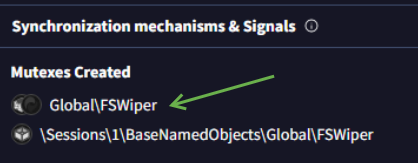 We can confirm as well that the Global\FSWipe name is a Mutex created by the sample.
